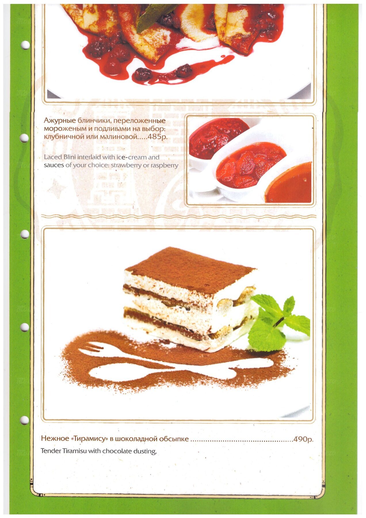 - Кухня: европейская